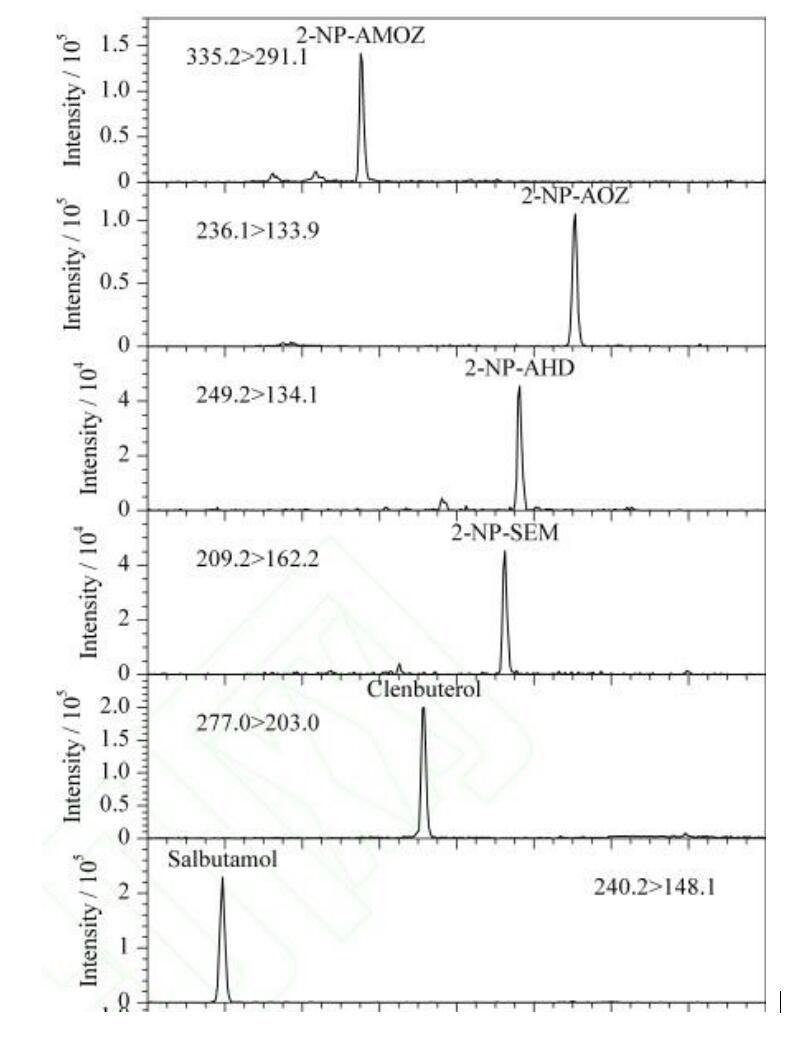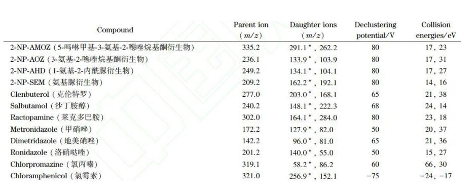 App ID: FLM-T240003 Titank C18 串聯(lián)質(zhì)譜法 12 種獸殘分析 (甲硝唑氯霉素氯丙嗪克侖特羅沙丁胺醇等) 色譜柱:Titank C18 3u 100*2.1mm 貨號:FMD-5559-BONU 流動相:A 乙腈 B 0.1%甲酸 流速:0.3ml/min 進(jìn)樣體積:5 μL 柱溫:40℃
