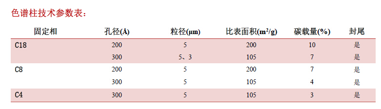 其在純水溶液中不會(huì)崩解。提供200 ?和300 ?兩種大孔徑規(guī)格,結(jié)合多種固定相選擇(C18、